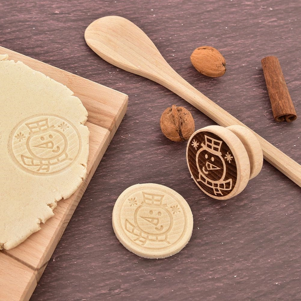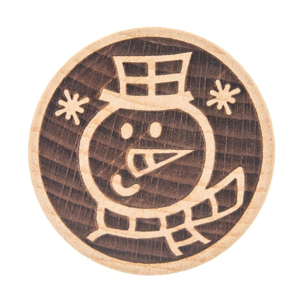 Objevte kouzlo domácího pečení s dřevěným razítkem na sušenky se vzorem sněhuláka. Z bukového dřeva, s pohodlným úchopem a průměrem 5,5 cm pro precizní otisk a roztomilý zimní motiv na sušenkách, perníčkách i fondánu.