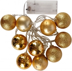 Zlaté vánoční „lampičky“ ve tvaru baněk o průměru 4 cm rozzáří váš domov teplým bílým světlem. Sada obsahuje 10 LED baněk na baterie, ideální pro interiér. Kombinace matných, lesklých a třpytivých povrchů působí elegantně a vytváří útulnou sváteční atmosféru. Díky napájení 2× AA je snadno umístíte na stromek, okno, krb či zábradlí – bez potřeby zásuvky.