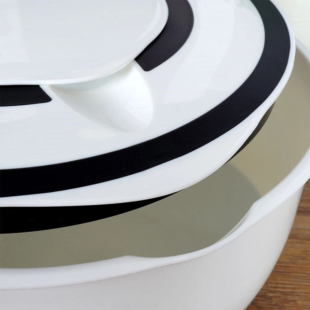 Mísa je vyrobena z bezpečných materiálů pro styk s potravinami, odolných vůči teplotám od -30 °C do +80 °C. Snadnou údržbu zajišťuje možnost mytí v myčce. Elegantní bílé provedení s černými prvky se hodí do každé kuchyně.