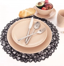- Stylový vzhled: černé provedení a krajkový efekt pro slavnostní i každodenní stolování