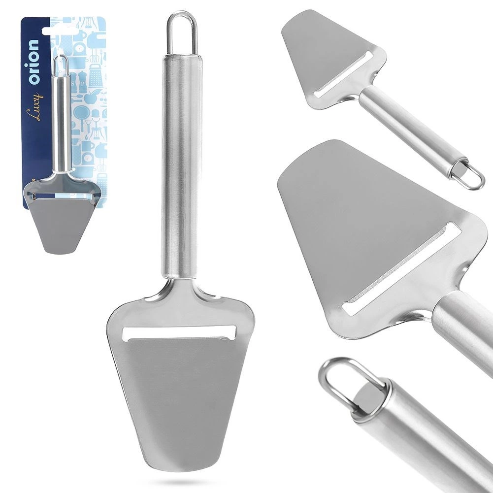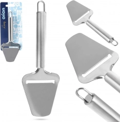 Praktický nerezový nůž–škrabka na sýr pro rychlé a přesné krájení tvrdých sýrů na tenké plátky. Ergonomická rukojeť zajišťuje pohodlné a bezpečné používání, odolné provedení z nerezové oceli garantuje dlouhou životnost a závěsné očko usnadní skladování. Vhodné do myčky nádobí.