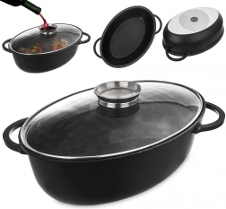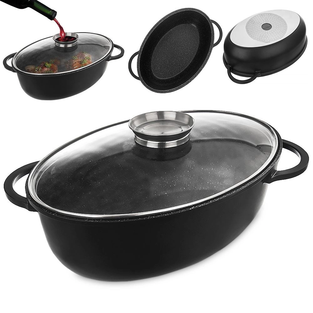Tento oválný pekáč je ideální pro pečení, dušení i zapékání větších porcí masa, zeleniny a rodinných pokrmů. Díky nepřilnavé granitové vrstvě PFLUON GRANIT připravíte jídla s menším množstvím oleje a čištění je rychlé a snadné. Skleněné víko umožňuje kontrolu průběhu vaření a integrovaný dávkovač ve víku usnadní podlévání vodou, vínem či omáčkou bez nutnosti víko zvedat.