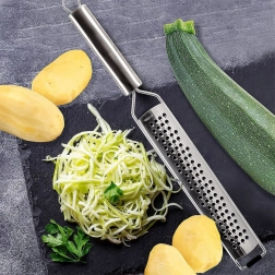 Univerzální kuchyňské struhadlo z kvalitní nerezové oceli je ideální pro každodenní přípravu jídel. Díky dlouhé ergonomické rukojeti skvěle padne do ruky a umožní přesné a rychlé strouhání bez námahy. Protiskluzová koncovka chrání hrnce a pánve před poškrábáním, takže můžete strouhat přímo do nádoby.