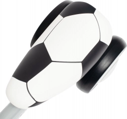 Sportovní černo-bílý motiv s fotbalovým vzorem podporuje radost z jízdy a motivuje děti k pohybu každý den.