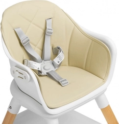 Stylová a praktická jídelní židlička CARETERO Bravo v béžové barvě kombinuje skandinávský design, bezpečnost a snadnou údržbu. Roste s dítětem – snadno ji přeměníte z vysoké židličky na nízkou židli nebo taburet. Nabízí pětibodový pás, stabilní dřevěné nohy s protiskluzem, odnímatelný tác a čalounění z eko kůže pro rychlé čištění.
