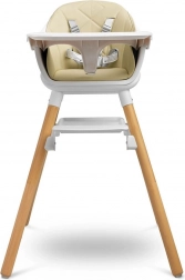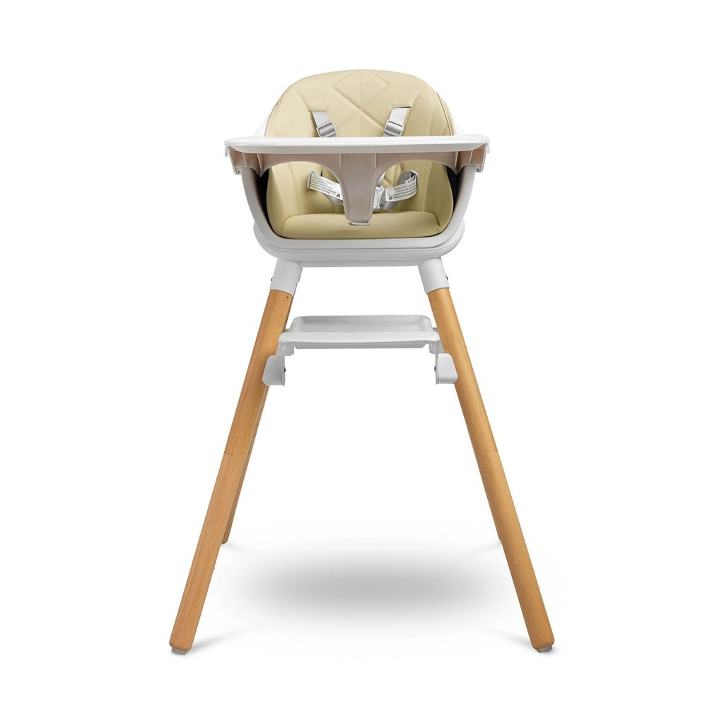 Profilovaný tác s odnímatelnou horní částí minimalizuje nepořádek při krmení a usnadňuje čištění. Čalounění z ekologické kůže spolu s plastovým sedákem stačí jednoduše otřít. O maximální bezpečí se starají čtyři masivní dřevěné nohy s protiskluzovými koncovkami a pětibodový nastavitelný bezpečnostní pás. Výrobek splňuje normu EN 14988:2017+A1:2020.