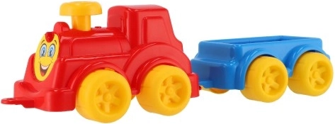 Součástí je odpojitelný vagónek, který se jednoduše připojí zpět — děti tak mohou „přepravovat náklad“, rozvíjet jemnou motoriku, koordinaci ruky a oka i fantazii. Hračka je vhodná od 12 měsíců a díky plastovému materiálu je perfektní také na písek.
