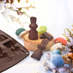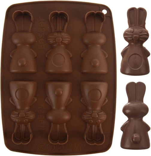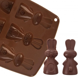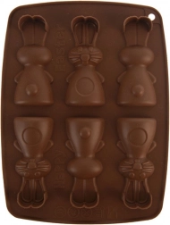 Tato hnědá silikonová forma umožní najednou připravit až 6 roztomilých zajíčků. Díky flexibilnímu, nepřilnavému materiálu snadno vyklopíte hotové sušenky, pralinky nebo čokoládky s detailním reliéfem. Forma je lehká, skladná a nenasává pachy ani chutě.
