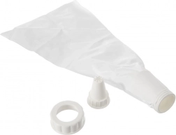 Adaptér spolehlivě drží trysku i při hustém krému a vyšším tlaku. Trysky lze měnit bez vyjmutí náplně ze sáčku.