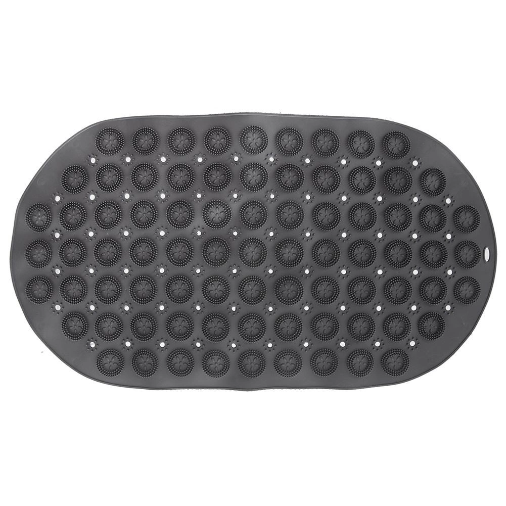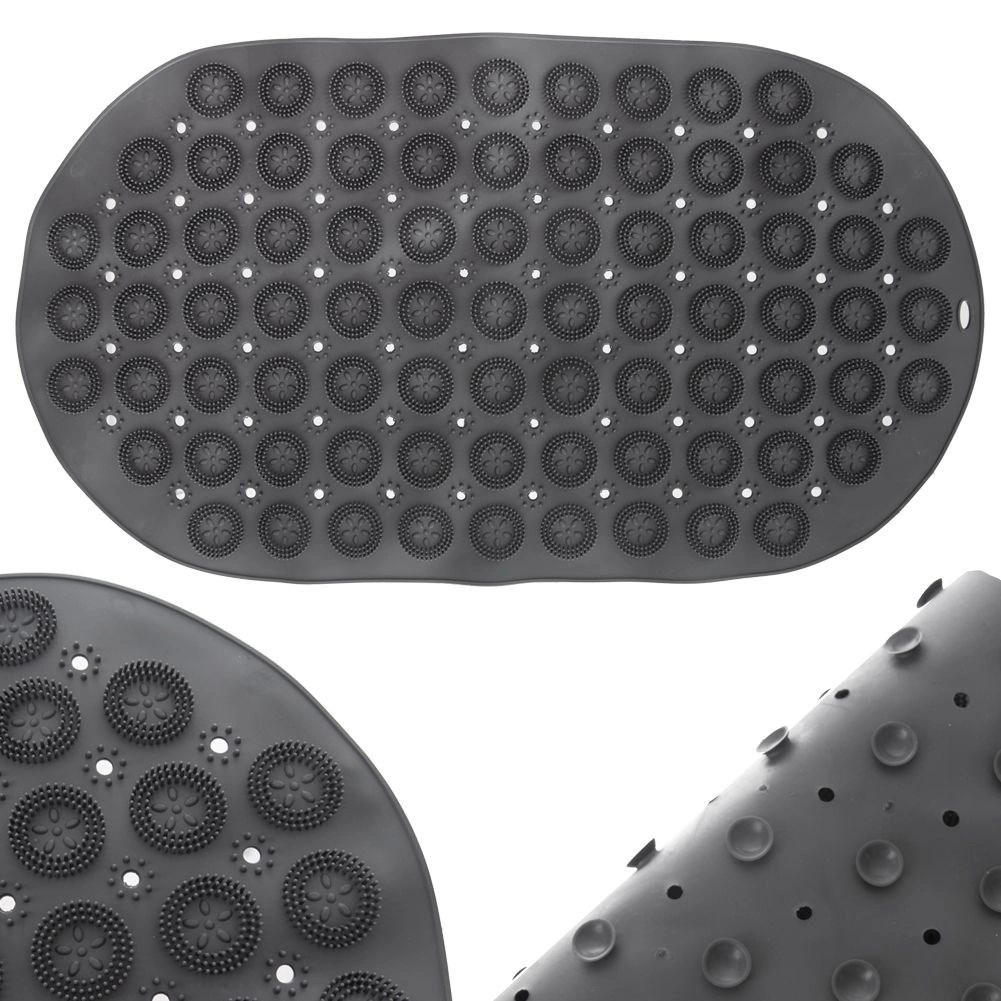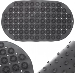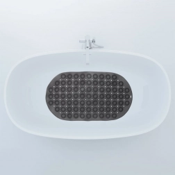 Tato oválná protiskluzová podložka je navržena pro bezpečnější krok ve vaně či sprchovém koutě. Husté přísavky na spodní straně zajišťují maximální přilnavost k hladkému povrchu, zatímco horní texturované výstupky jemně masírují chodidla a zvyšují komfort při koupeli.