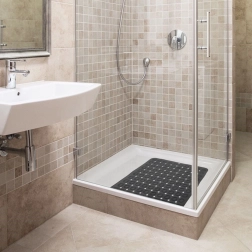 Desítky přísavek po celé ploše zajistí pevné uchycení k hladkému povrchu sprchy či vany a minimalizují riziko uklouznutí.