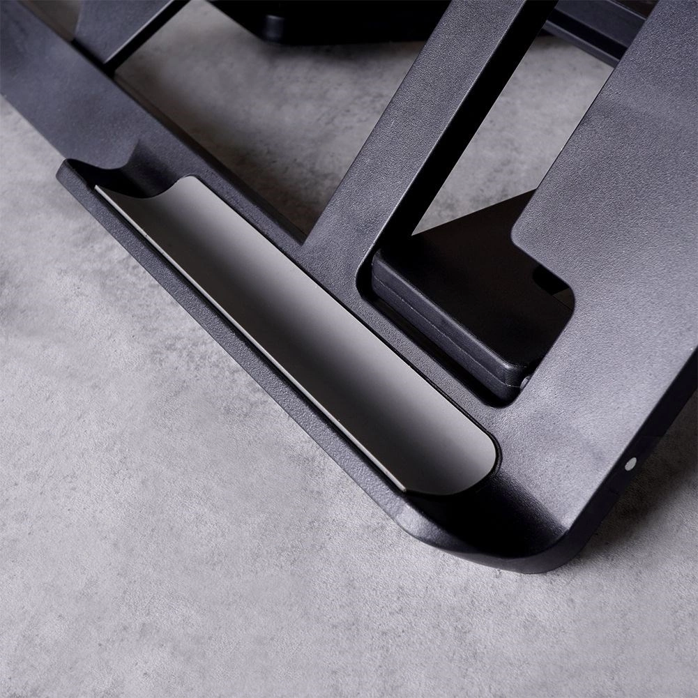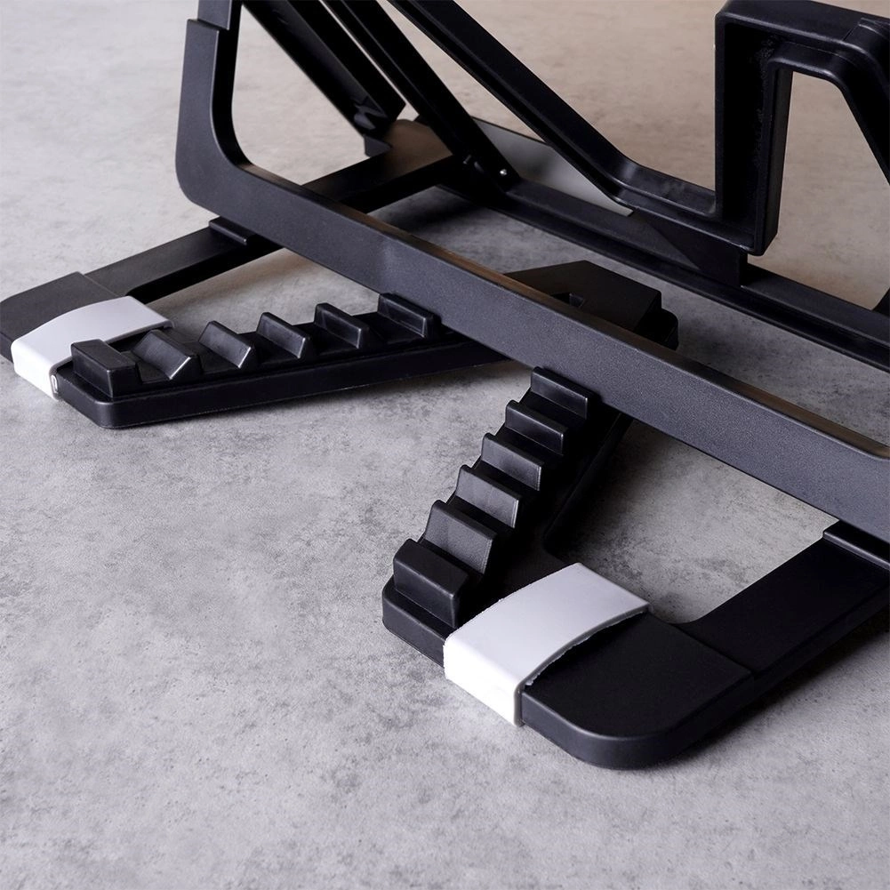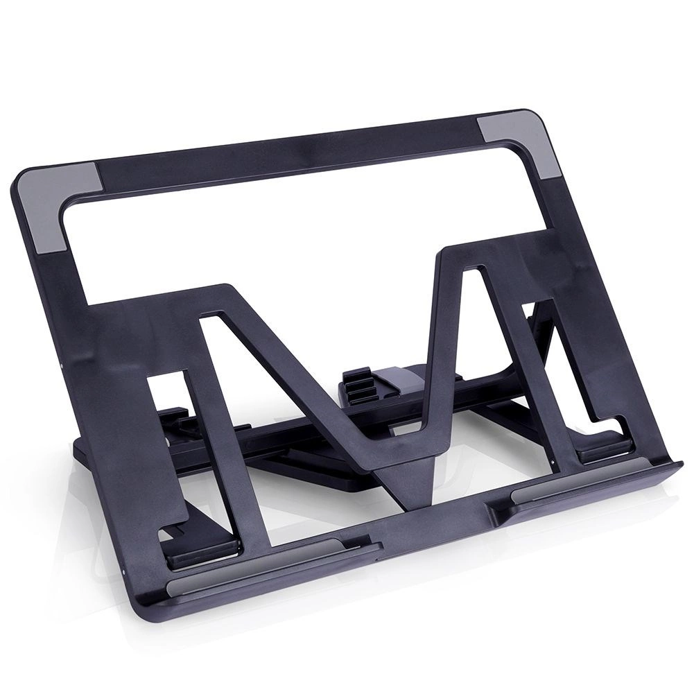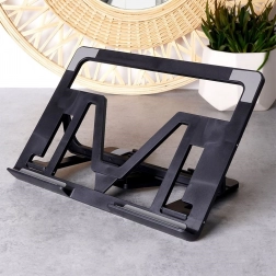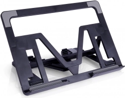 Stojan je vyroben z kvalitního a odolného plastu s pevnými díly z ABS, které zajišťují stabilitu. Protiskluzové podložky chrání zařízení a zabraňují posunu na stole. Po použití jej jednoduše složíte naplocho – perfektní pro přenášení i skladování.