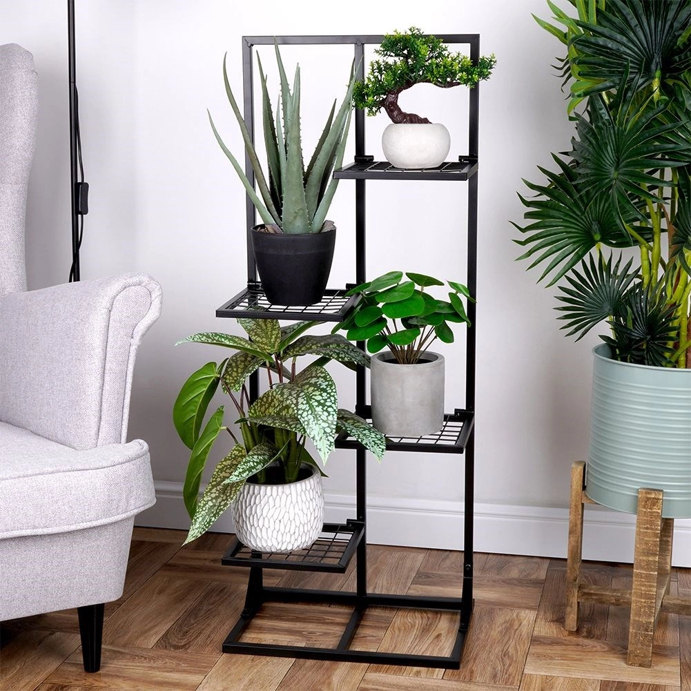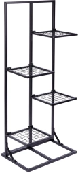 Vneste do domova pořádek i styl. Tento černý kovový květinový stojan se čtyřmi patry umožní přehledně vystavit listnaté i popínavé rostliny, kaktusy, květiny v květináčích i dekorace. Díky vzdušné konstrukci mají rostliny lepší přístup ke světlu a cirkulaci vzduchu, což prospívá jejich růstu.