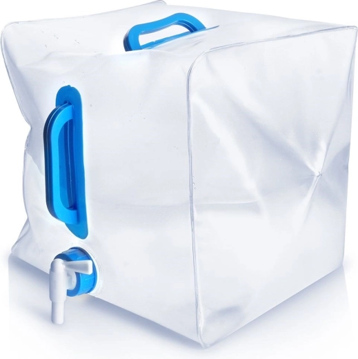 Skládací kanystr na pitnou vodu s objemem 20 litrů je vyroben z kvalitního transparentního plastu, který je odolný a zároveň lehký. Vestavěný kohoutek umožňuje kontrolované nalévání bez rozlévání a ergonomická madla usnadňují přenášení i plný zásobník.
