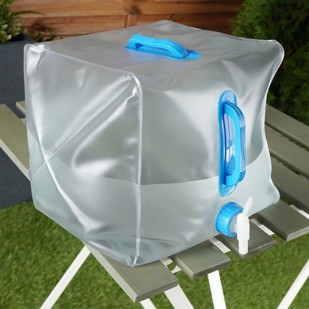 Praktický skládací zásobník na vodu o objemu 20 l s integrovaným kohoutkem a dvěma madly pro snadné přenášení. Ideální pro kempování, výlety, pláž i zahradu. Díky flexibilnímu materiálu se po vypuštění snadno složí a zabere minimum místa. Odolné provedení, kompaktní rozměry a pohodlné dávkování vody dělají z tohoto kanystříku spolehlivého pomocníka na cesty i do domácnosti.