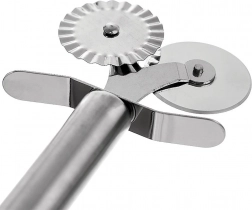 Jedno hladké kolečko pro čisté přímé řezy a druhé vlnité pro ozdobné zubaté okraje a utěsnění těsta – ideální na ravioli, sušenky i tartaletky.