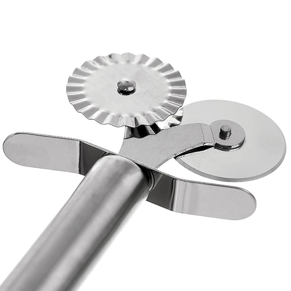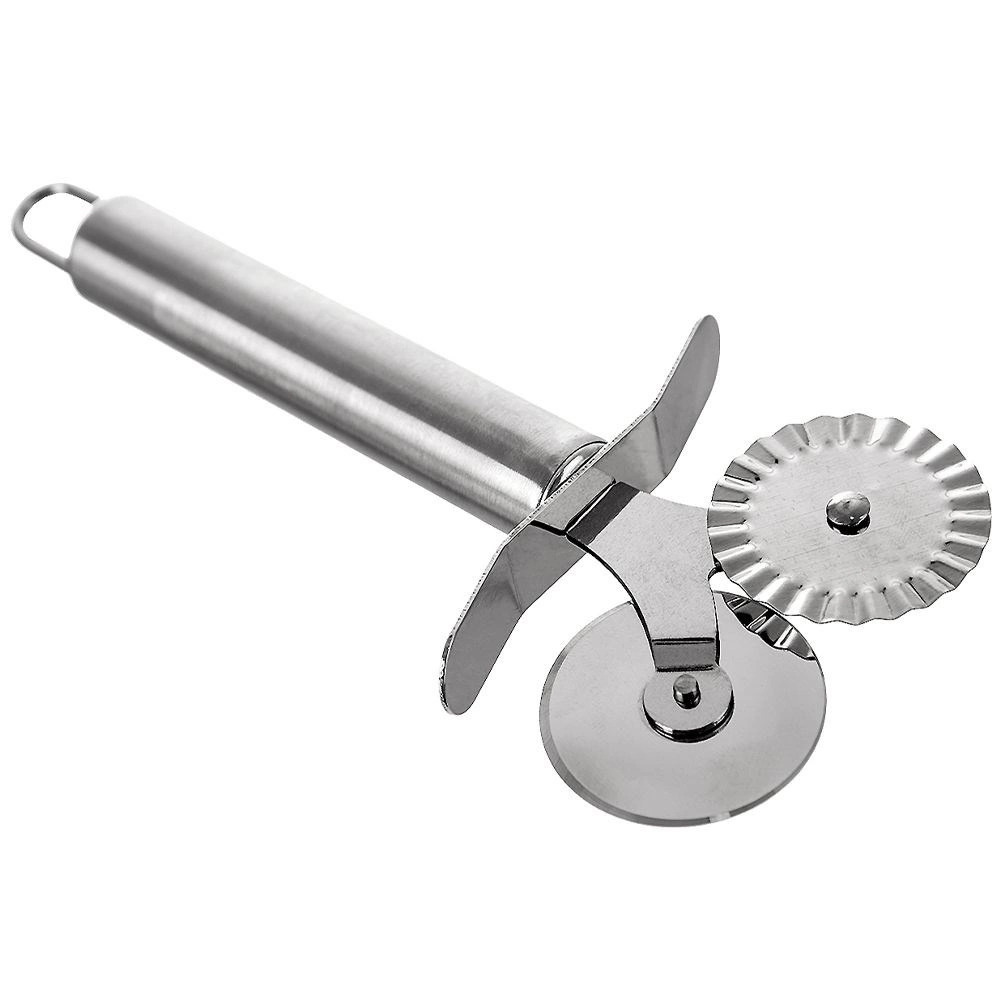 Univerzální nerezové rádýlko se dvěma řeznými kolečky vám usnadní přípravu domácích těstovin, ravioli, sušenek i slaných krekrů. Hladké kolečko řeže dokonale rovně, zatímco ozdobné vlnité kolečko vytváří efektní zubaté okraje a zároveň pomáhá utěsnit okraje těsta u taštiček či ravioli.