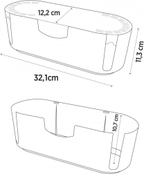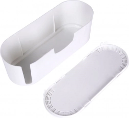 Díky kompaktním rozměrům 32 × 12 × 11,5 cm se box vejde na stůl i na polici, přitom pojme běžnou lištu s více zásuvkami. Hladký, snadno omyvatelný povrch v bílé barvě zapadne do moderního interiéru a chrání kabeláž před prachem, vlhkostí a mechanickým poškozením. Organizér zároveň zvyšuje bezpečnost – omezuje přístup k exponovaným zásuvkám a kabelům.