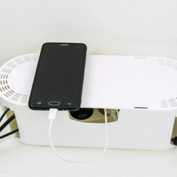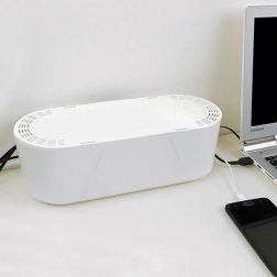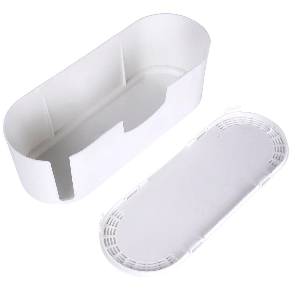 Udržte pracovní stůl i obývák dokonale uklizené s tímto bílým organizérem na kabely o rozměrech 32 × 12 × 11,5 cm. Skryje prodlužovačku i nabíječky, zabrání zamotávání kabelů, chrání před prachom, vlhkostí a mechanickým poškozením a zároveň díky větracím otvorům ve víku zajišťuje bezpečné odvětrávání tepla. Boční průchody usnadňují správné vedení kabelů a zvyšují bezpečnost v domácnosti s dětmi a domácími mazlíčky.