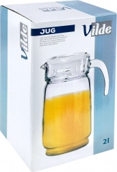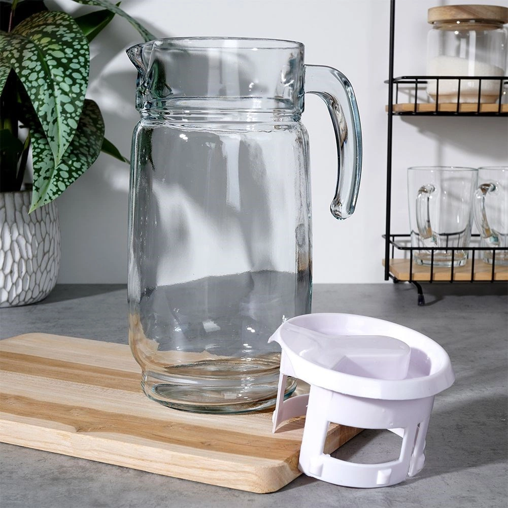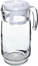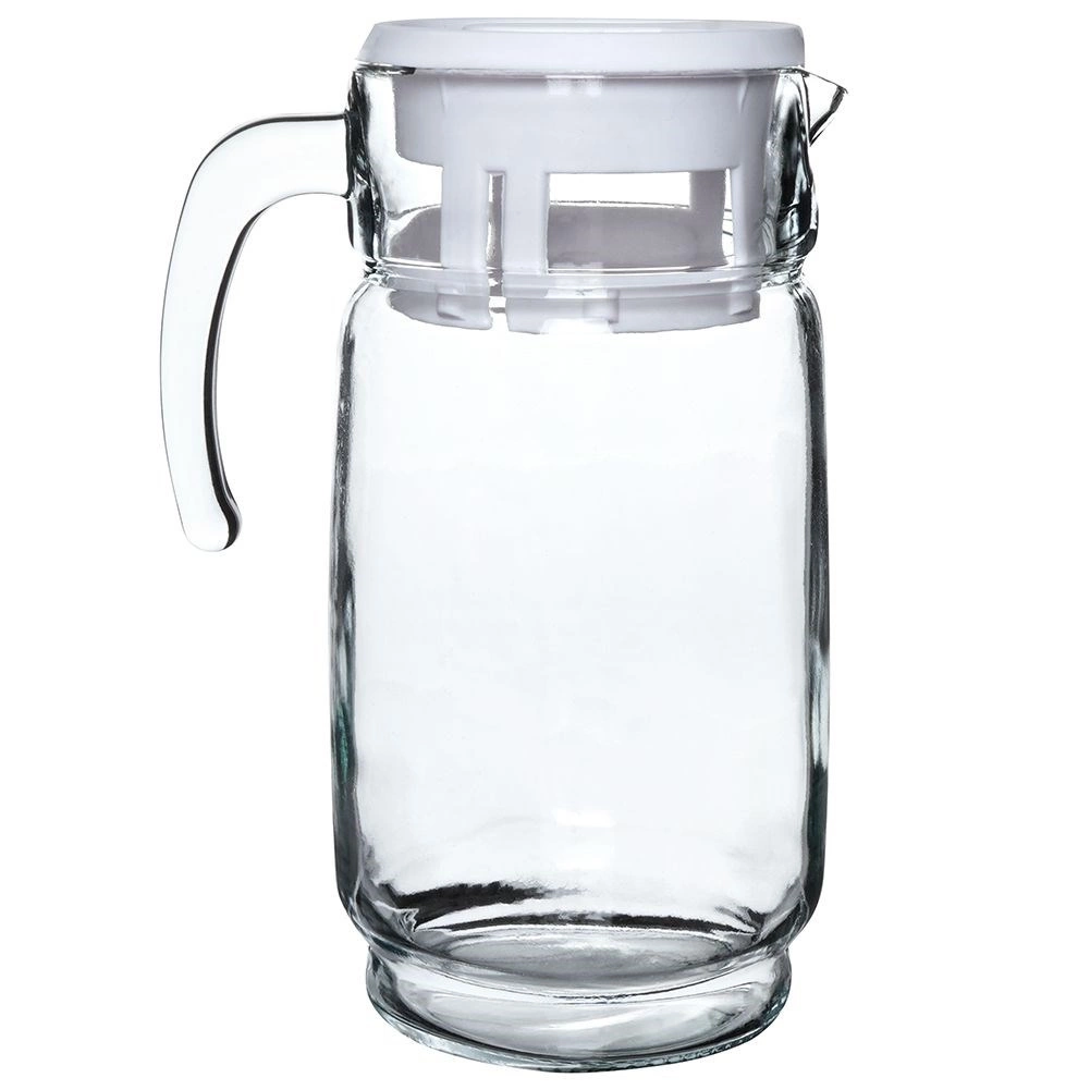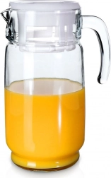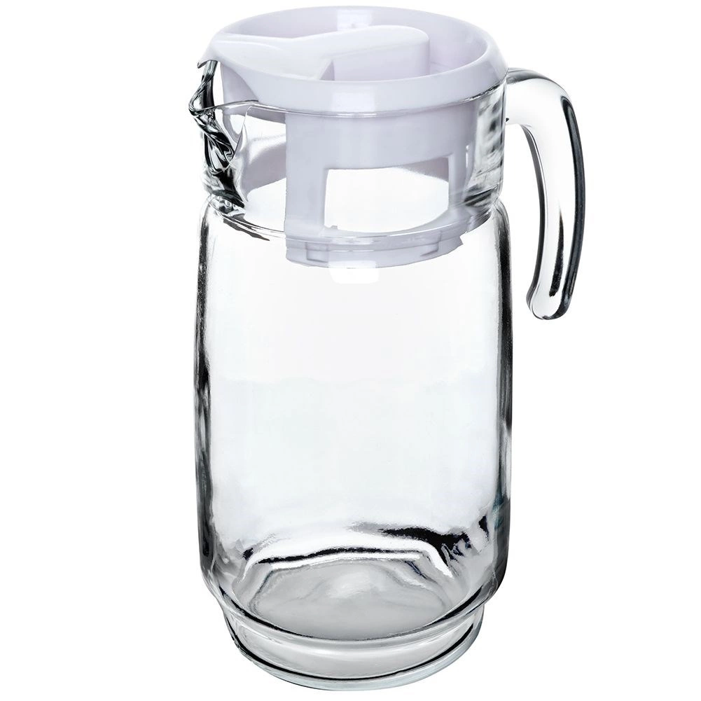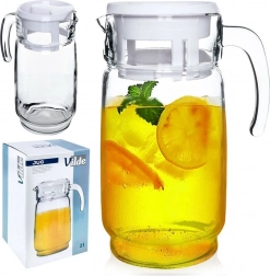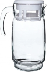 Elegantní skleněný džbán s bílým víčkem o objemu až 2 litry je ideální pro vodu, džusy, limonády i ledové čaje. Díky pevné rukojeti a tvarovanému zobáčku se nápoje nalévají pohodlně a bez kapání. Praktické víčko chrání obsah před nečistotami a hmyzem, zatímco čiré sklo dodá vašemu stolu dekorativní vzhled.