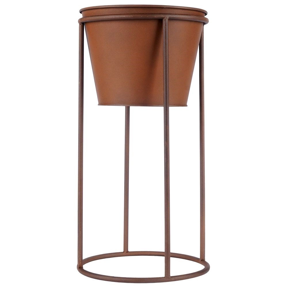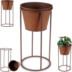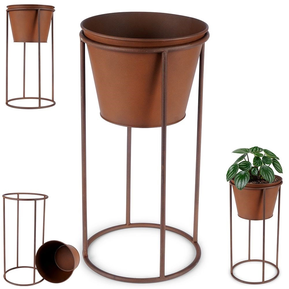 Elegantní kovový květináč na stojanu v retro stylu pro stylovou prezentaci rostlin doma i venku. Stabilní konstrukce, rezavý dekor a snadno vyjímatelná vložka umožní pohodlnou péči o květiny, bylinky i dekorativní zeleň. Perfektní pro balkon, terasu, zahradu i kancelář.