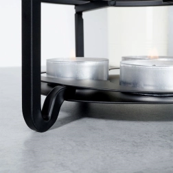Díky místu pro tři tealighty udrží stabilní teplotu po delší dobu, takže je ideální na rodinné oslavy, posezení s přáteli nebo dlouhé zimní večery u čaje. Skvěle poslouží také pro přípravu fondue – stačí zvolit menší keramickou nebo ocelovou nádobu.