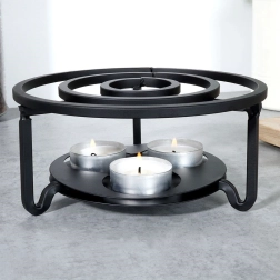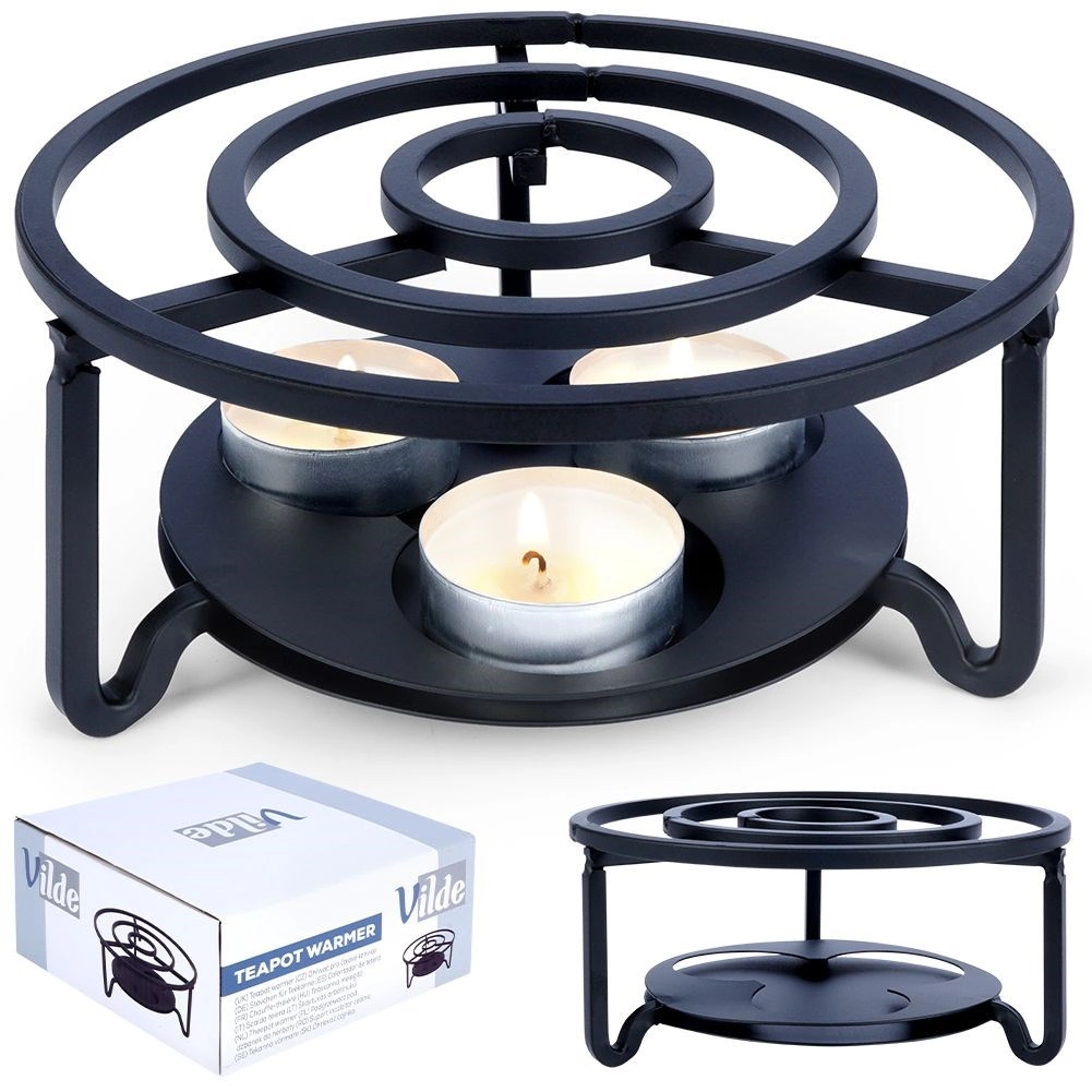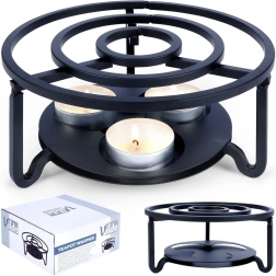 Univerzální kovový ohřívač pod konvici a další nádoby udrží vaše nápoje i pokrmy déle teplé přímo na stole. Má průměr 16,5 cm a výšku 7,5 cm, nabízí prostor pro 3 čajové svíčky (tealighty) a díky pevné kovové konstrukci v černé barvě skvěle zapadne do každého interiéru.