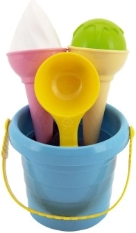 Roztomilá sada na písek se zmrzlinovým motivem potěší každého malého tvůrce. Děti si mohou „načepovat“ vlastní zmrzlinu z písku a hrát si na kavárnu, restauraci nebo obchod. Lehká, bezpečná a zábavná hračka s certifikátem CE pro děti od 1 roku je ideální na pláž, hřiště i zahradu.