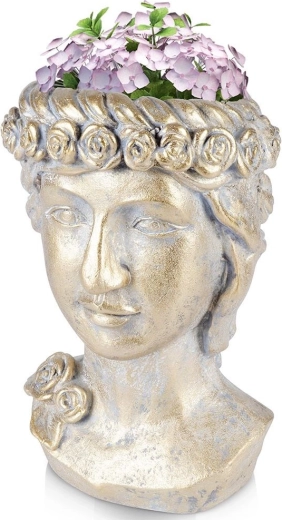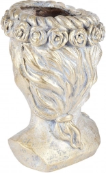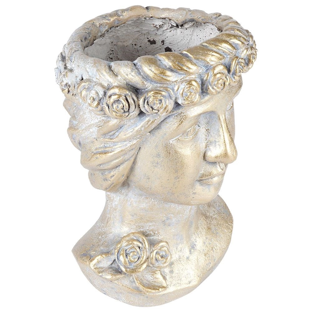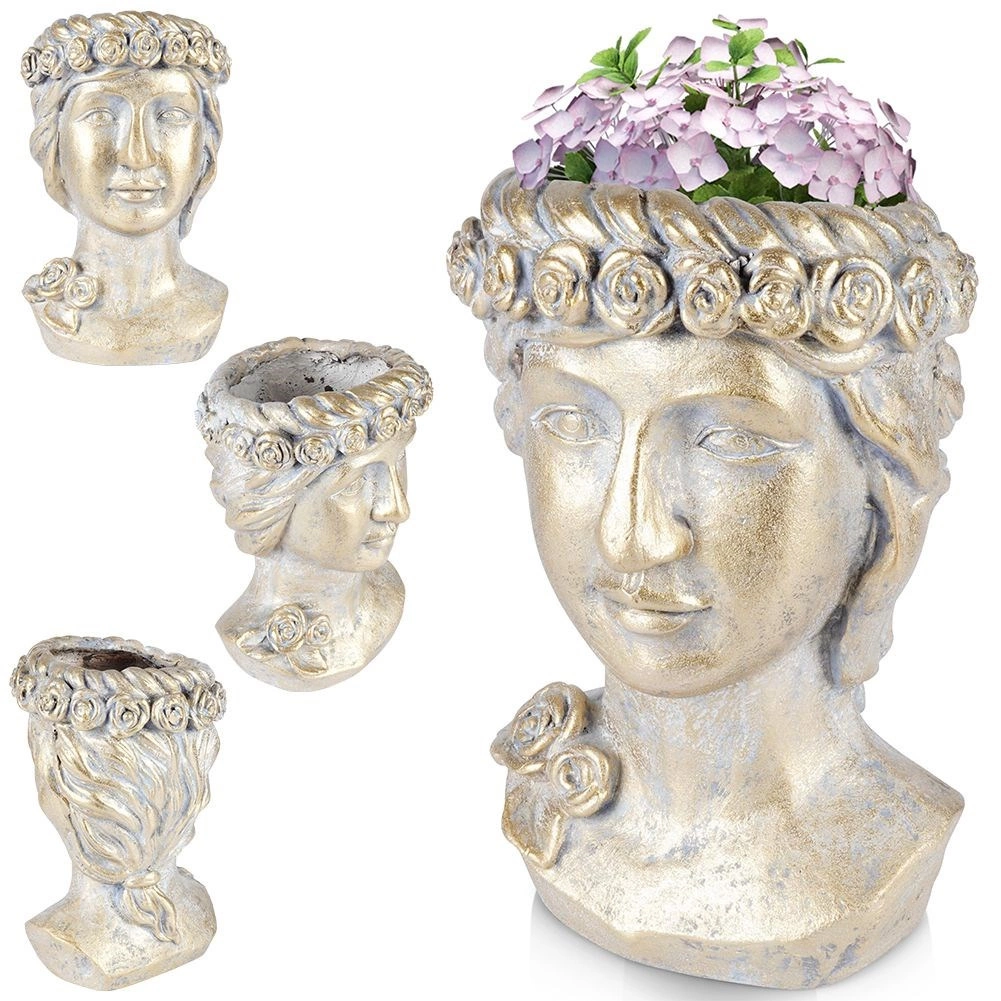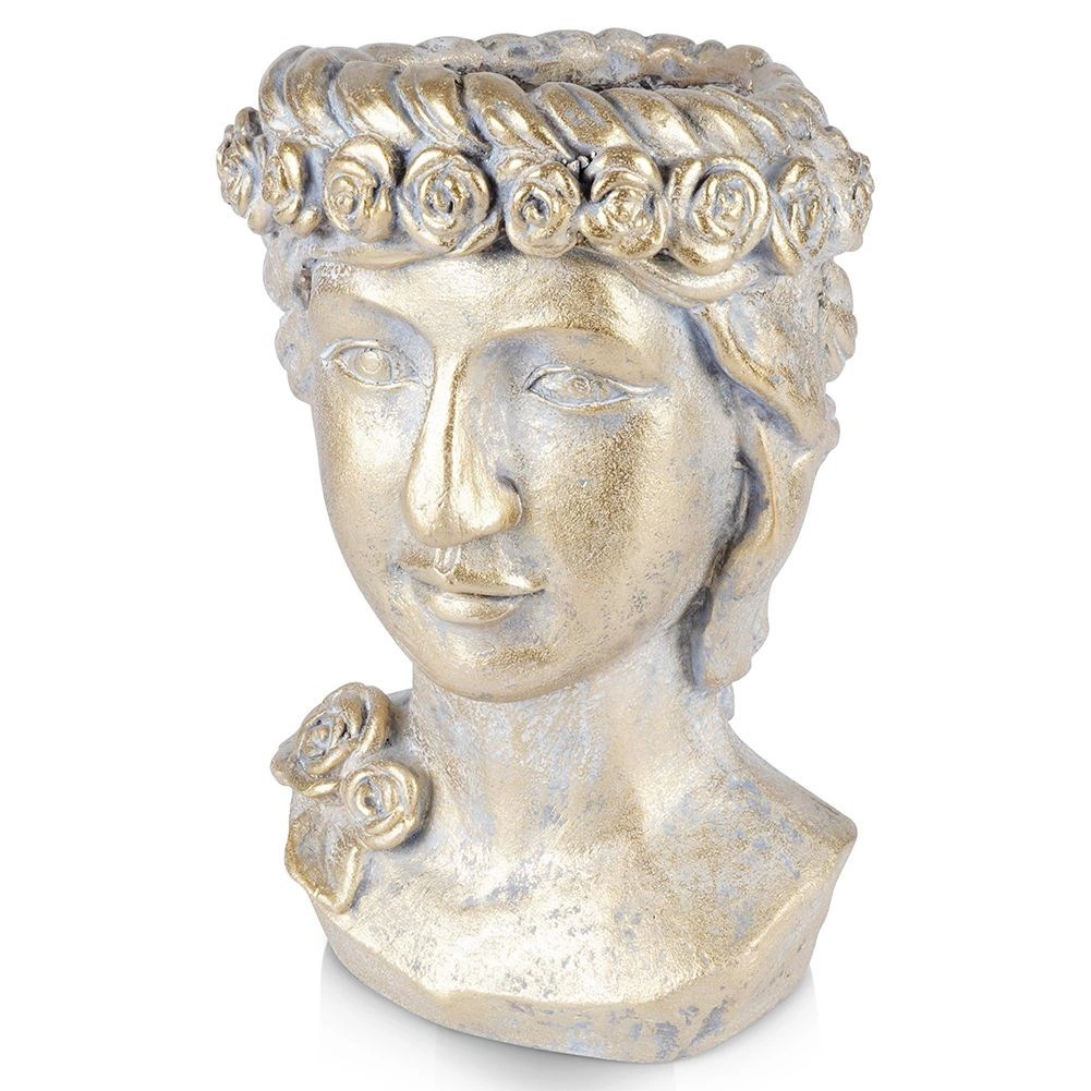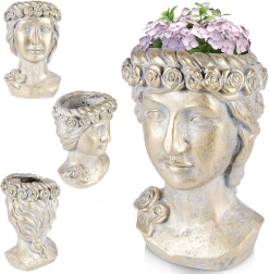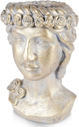 Tento dekorativní květináč ve tvaru řecké busty se stane dominantou každé místnosti. Zlaté metalické provedení s patinou podtrhuje plastické detaily a vytváří luxusní dojem, který perfektně ladí s moderními i klasickými interiéry. Vhodný do obýváku, pracovny i předsíně.