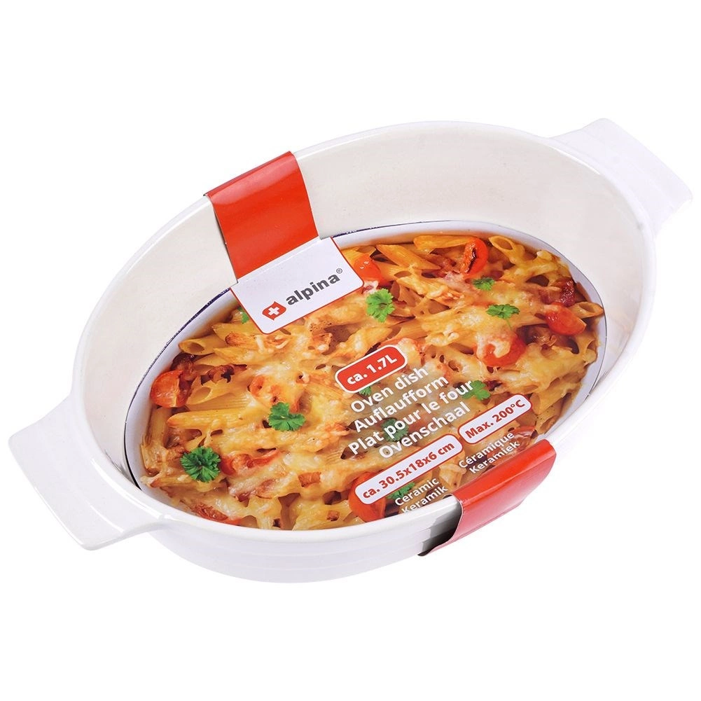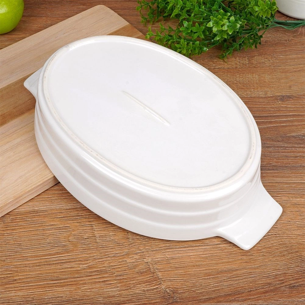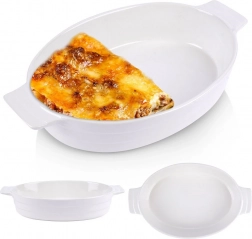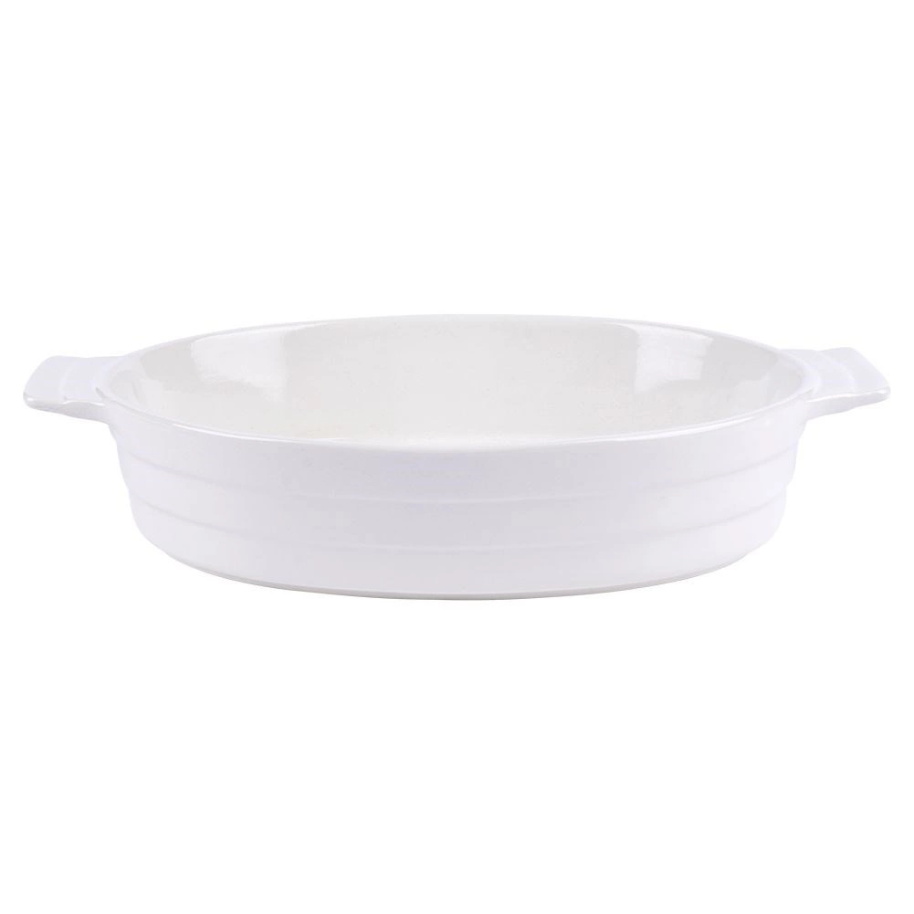 Tato oválná keramická zapékací mísa vyniká univerzálním využitím – od domácích lasagní přes zapečené těstoviny až po zeleninové nákypy. Integrované úchyty zajistí jistý úchop při přenášení z trouby na stůl a nadčasová bílá glazura se snadno kombinuje s jakýmkoliv nádobím.