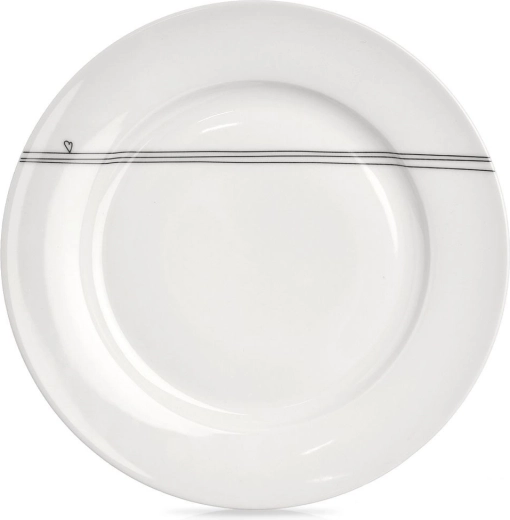 Elegantní porcelánový talíř o průměru 27 cm v bílé barvě s jemným motivem linií a srdíčka je skvělou volbou pro každý den i sváteční stolování. Univerzální využití, klasický design a snadná údržba z něj dělají praktický doplněk každé domácnosti.