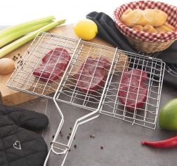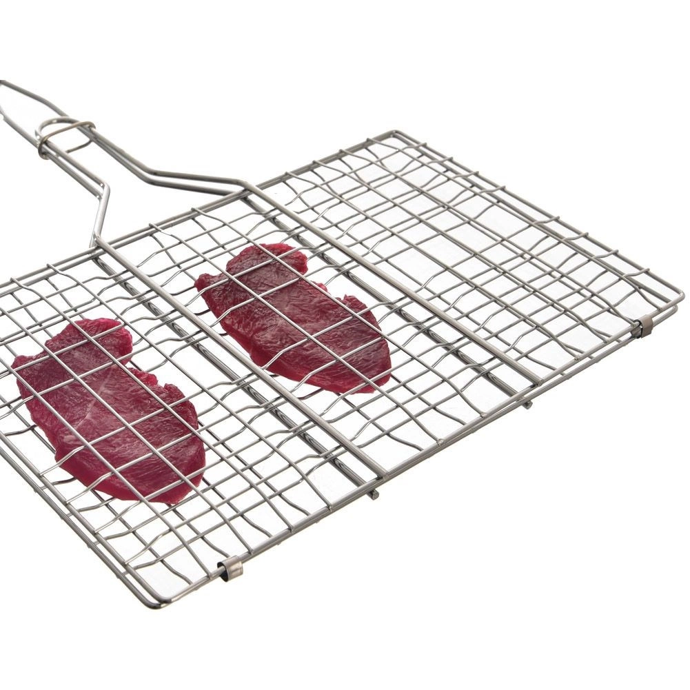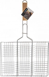 Praktický, oboustranný a uzamykatelný grilovací rošt z pochromovaného kovu s dlouhou dřevěnou rukojetí pro bezpečnou manipulaci. Ideální na burgery, ale také na maso, ryby a zeleninu. Díky konstrukci zajišťuje rovnoměrnou cirkulaci tepla a snadné obracení bez rozpadu potravin.