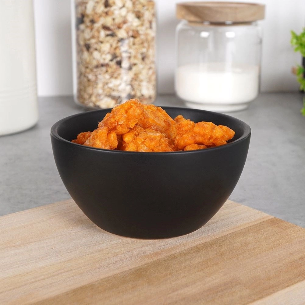 Praktická keramická miska o objemu 180 ml a průměru 10 cm je ideální pro každodenní použití. V matné černé barvě se skvěle hodí na malé pochutiny, dezerty, dip y a omáčky. Díky kvalitní keramice je odolná, lze ji mýt v myčce a používat v mikrovlnné troubě. Moderní design krásně doplní každou tabuli.