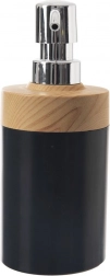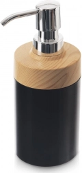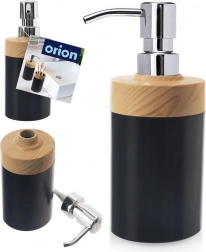 Tento stylový dávkovač kombinuje moderní matnou černou s přírodním dřevodekorem a lesklou pumpičkou. Je vhodný pro tekuté mýdlo, dezinfekci i prostředek na mytí nádobí. Díky jednoduchému šroubovacímu víčku je doplňování rychlé a čisté, což šetří čas i peníze při nákupu větších, ekologičtějších balení.