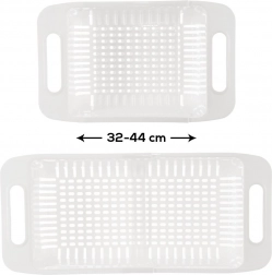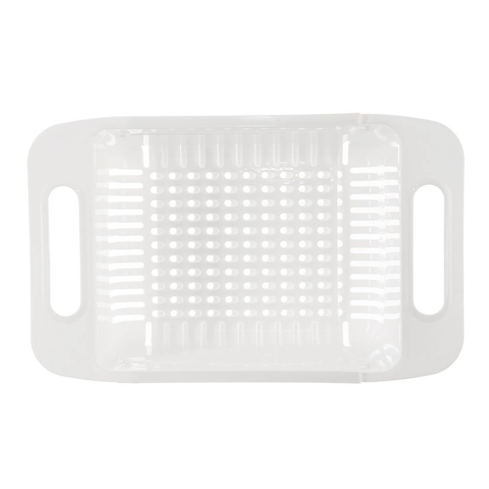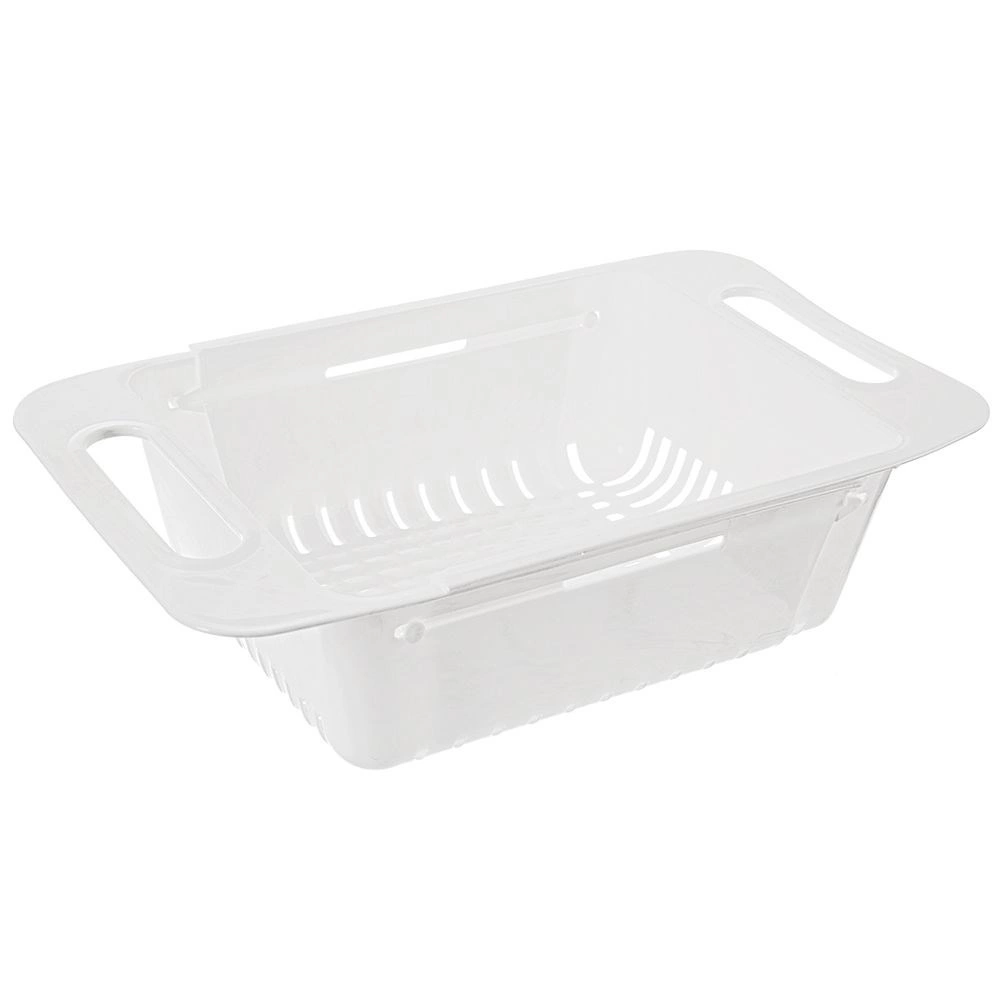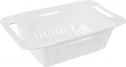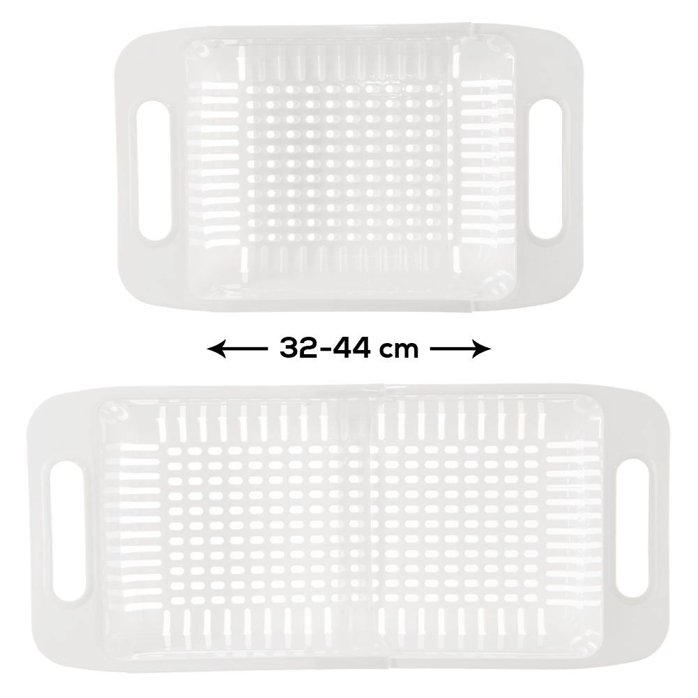 Univerzální cedník do dřezu s regulovatelnou délkou pro pohodlné mytí ovoce a zeleniny i cezení těstovin. Vyroben z odolného plastu v bílé barvě, snadno se čistí a lze mýt v myčce. Díky teleskopickým držadlům sedí na dřezech různých velikostí.
