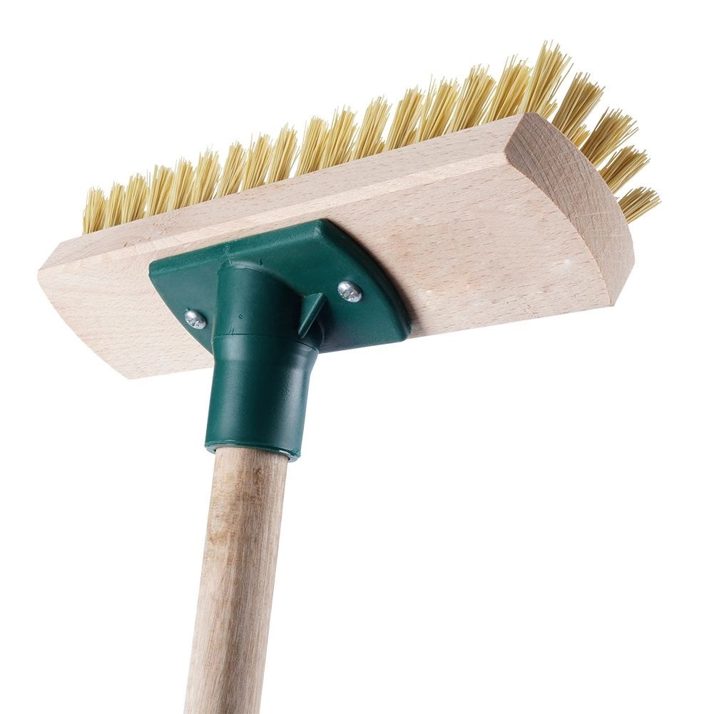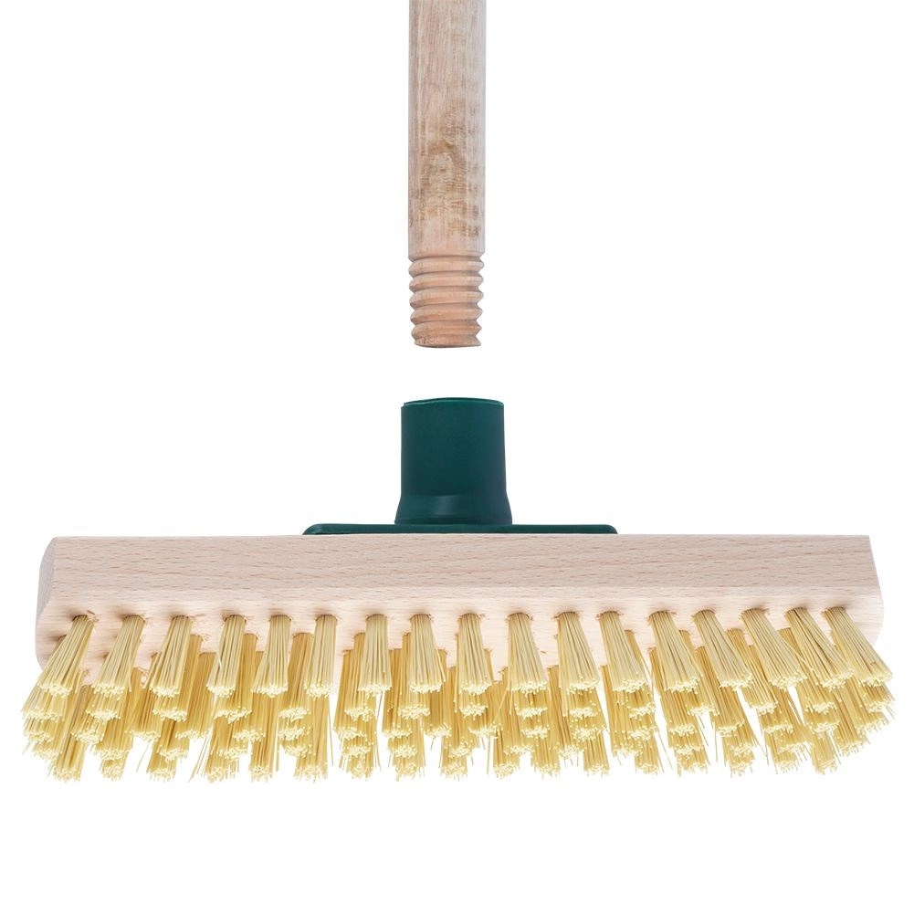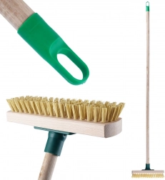 Robustní dřevěný blok a pevné uchycení k násadě zajišťují stabilitu při práci na dlažbě, betonu či kameni.