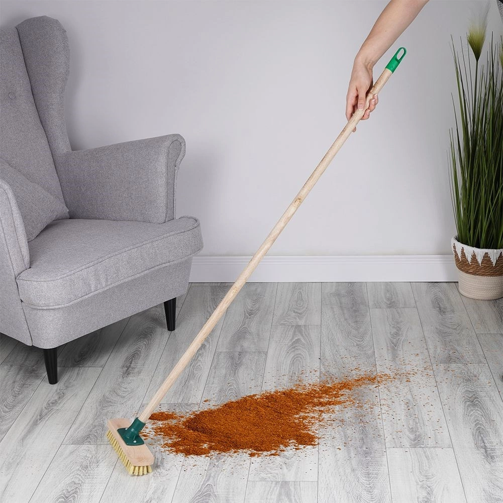Robustní kartáč na drhnutí je navržen pro náročné čištění podlah, dlaždic, betonu i dřeva. Tvrdé štětiny si poradí s odolnými nečistotami a zanechají povrch čistý bez námahy. Dřevěná násada poskytuje jistý úchop a správnou páku pro efektivní tlak při drhnutí.