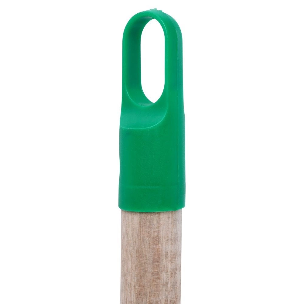 Pevná dřevěná rukojeť přibližně 120–125 cm šetří záda a umožňuje vyvinout potřebný tlak. Koncovka s očkem zaručuje snadné zavěšení.