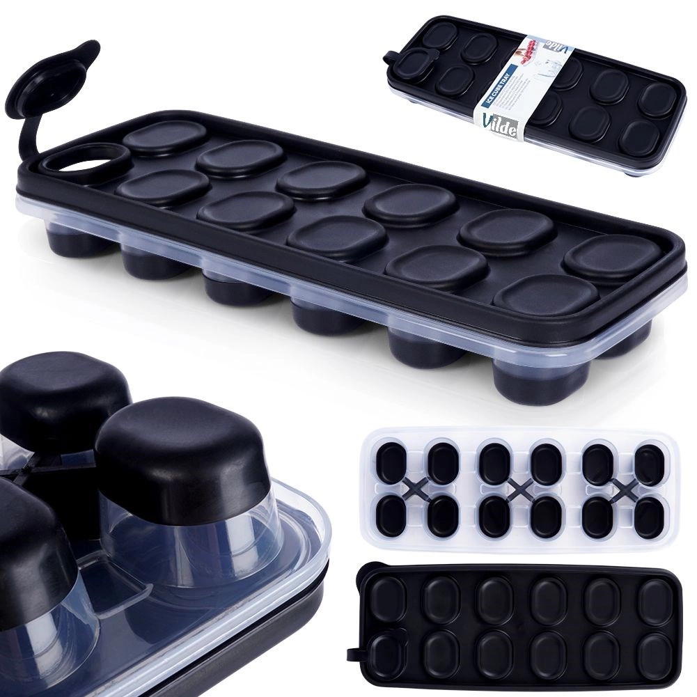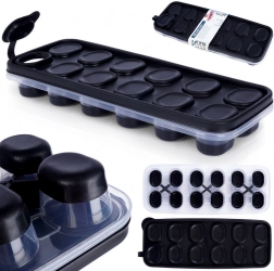 Praktická forma na led s víčkem a nalévacím otvorem pro snadné plnění bez rozlití. Vytvoří až 12 kostek ledu, má bezpečné materiály vhodné pro styk s potravinami a snadné vyjímání díky silikonové základně. Ideální na vodu, nápoje i koktejly, vhodná také pro mražení ovocných šťáv a sorbetů.