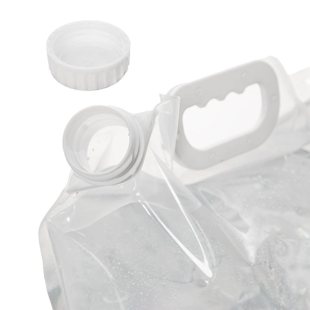 Široké šroubovací hrdlo zajišťuje rychlé plnění a čištění, pevná rukojeť usnadňuje přenášení i nalévání. Transparentní materiál pomáhá hlídat zbývající objem vody. Zásobník je vyroben z odolného plastu vhodného pro opakované použití, ideální pro outdoor, kemping a nouzové zásoby vody.