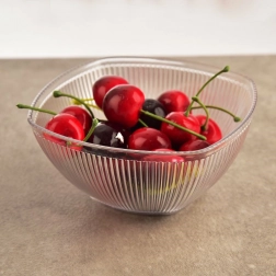 Stylová servírovací miska s čtvercovým zaobleným tvarem a svislým rýhováním skvěle vynikne na stole doma i na zahradě. Transparentní akryl zvýrazní barvy podávaných pokrmů a díky textuře se miska příjemně drží.
