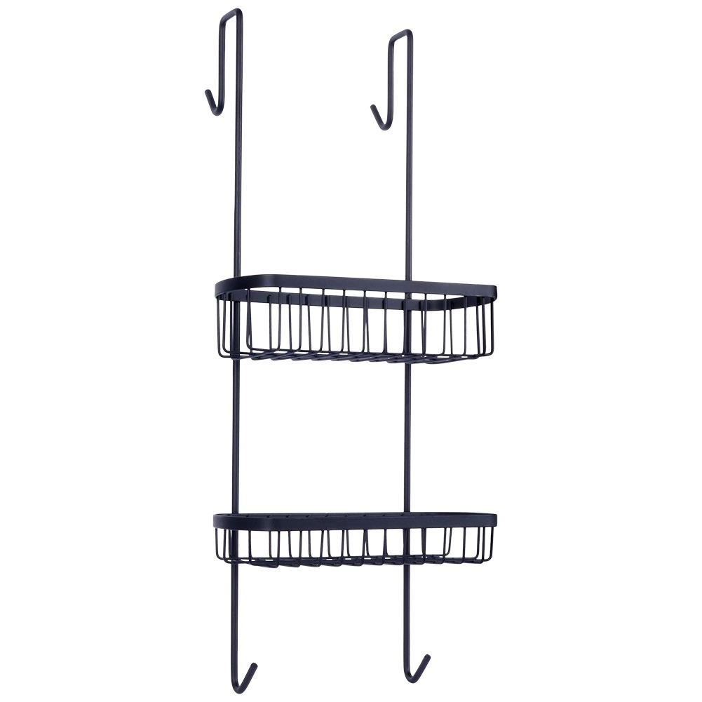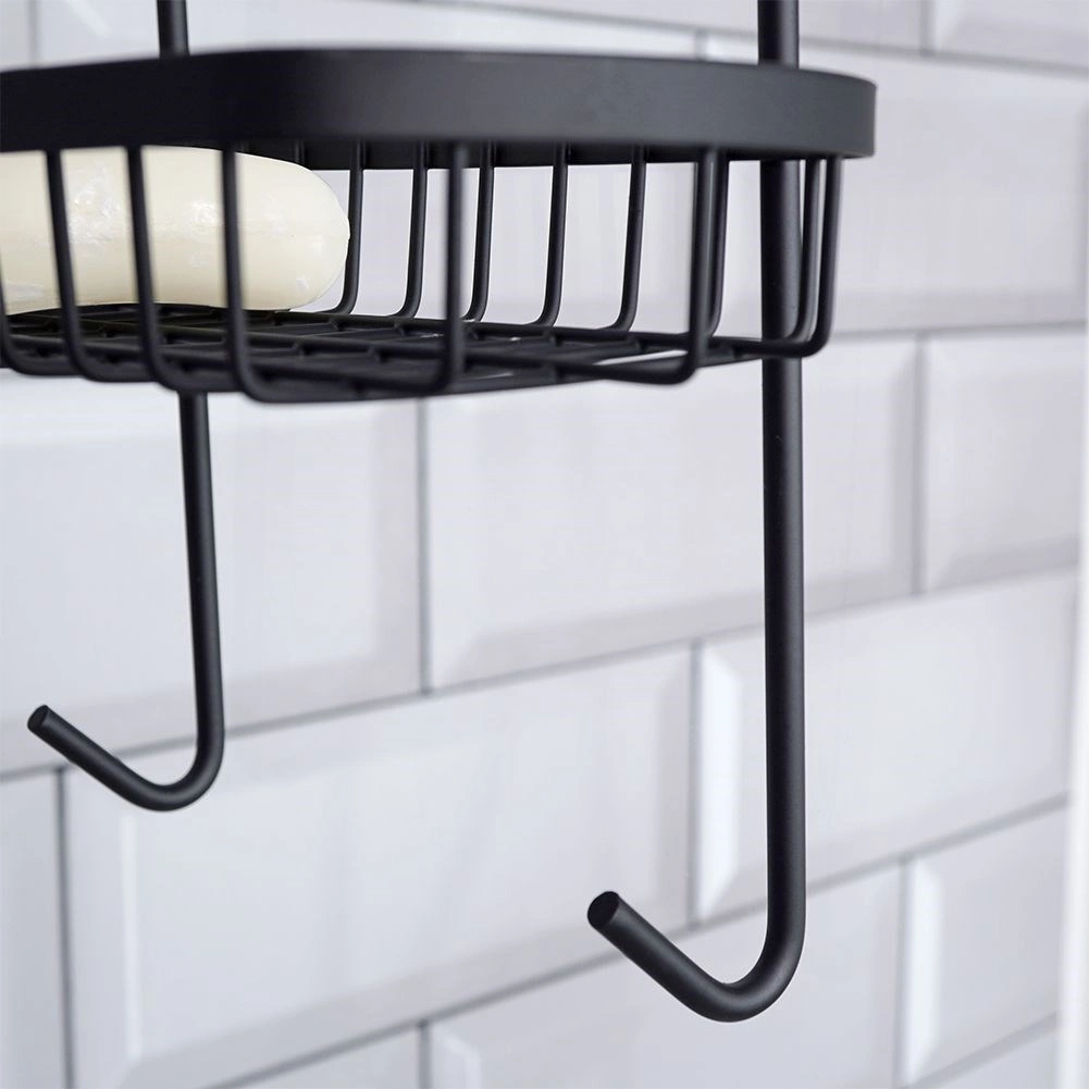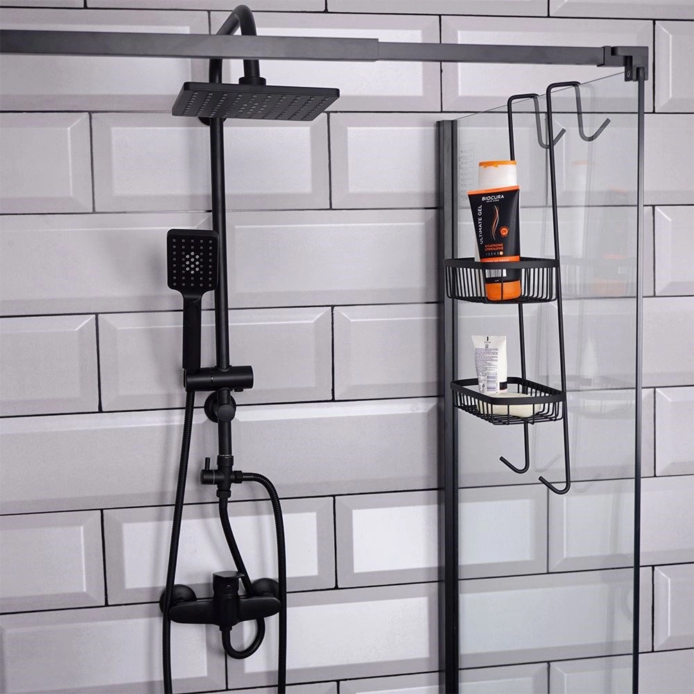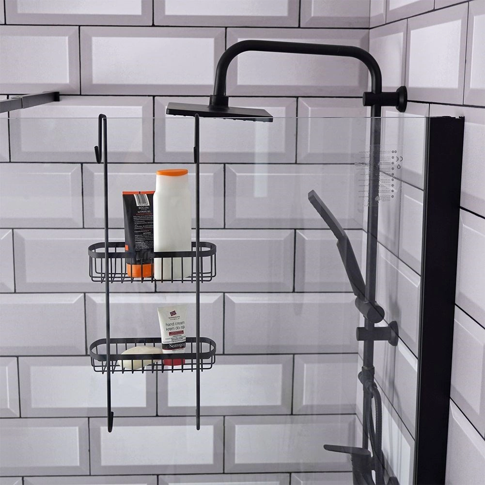 Tato závěsná sprchová polička je navržena pro zavěšení na horní hranu skleněné stěny sprchového koutu. Díky dvěma drátěným košíkům a spodním háčkům udrží vaše koupelnové potřeby přehledně uspořádané a vždy po ruce. Minimalistický loftový design v černé barvě se hodí do každé moderní koupelny.