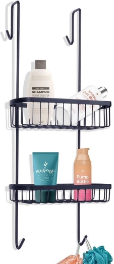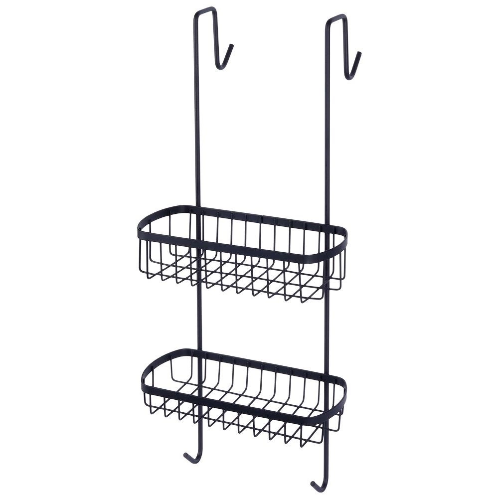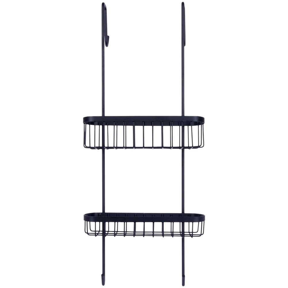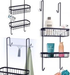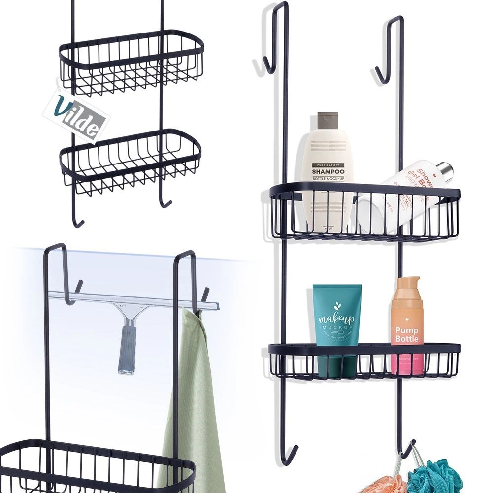 Tato závěsná sprchová polička je navržena pro zavěšení na horní hranu skleněné stěny sprchového koutu. Díky dvěma drátěným košíkům a spodním háčkům udrží vaše koupelnové potřeby přehledně uspořádané a vždy po ruce. Minimalistický loftový design v černé barvě se hodí do každé moderní koupelny.
