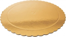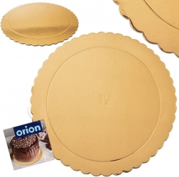 Tato zlatá kulatá podložka pod dort nabízí stabilní a estetický základ pro servírování, dekorování i přenášení dortů a zákusků. Díky oboustrannému zlatému povrchu působí luxusně z obou stran a zvýrazní každý slavnostní dezert.