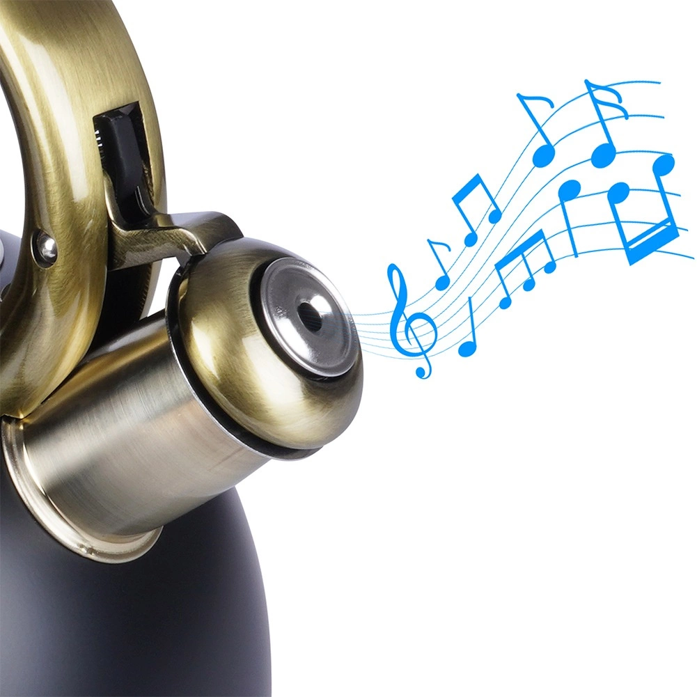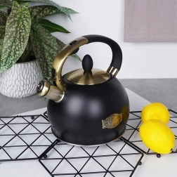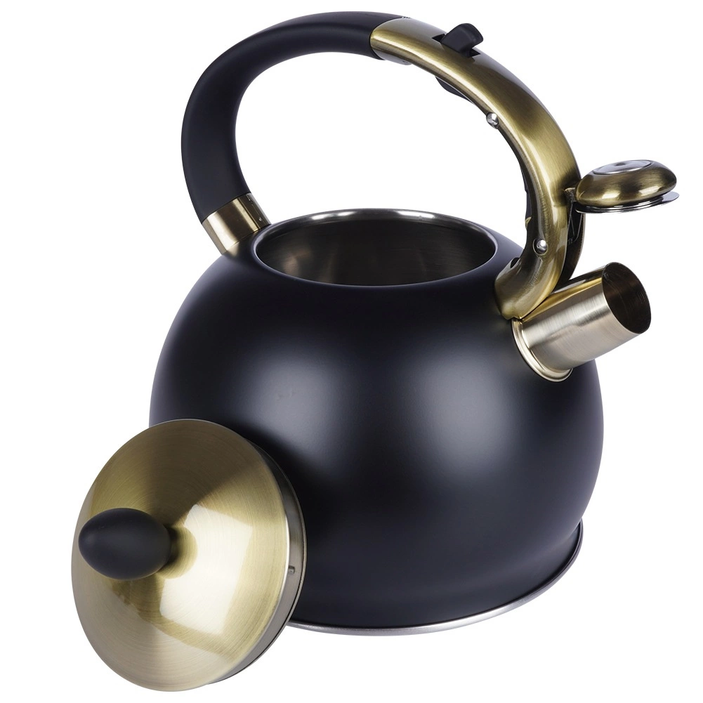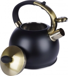 Tato stylová konvice je vyrobena z kvalitní nerezové oceli, která je odolná a chuťově neutrální. Díky kombinaci matné černi a zlatých akcentů se stane designovou ozdobou vaší kuchyně – ať už moderní, nebo klasické. Praktická odnímatelná poklička usnadňuje doplňování vody a čištění.