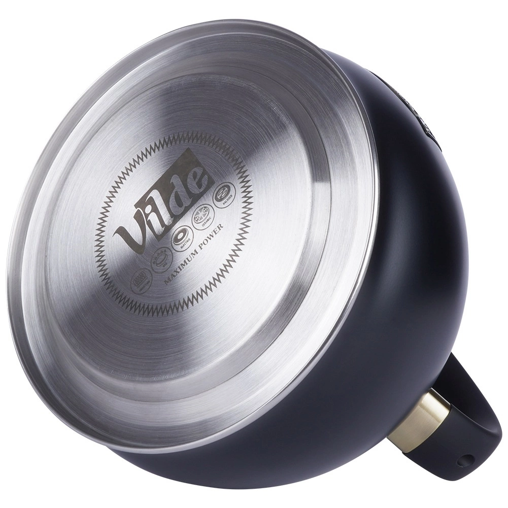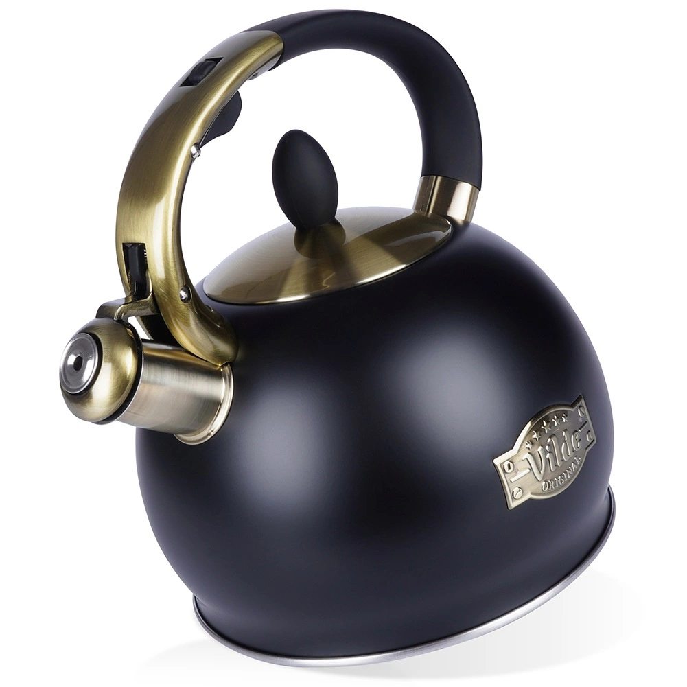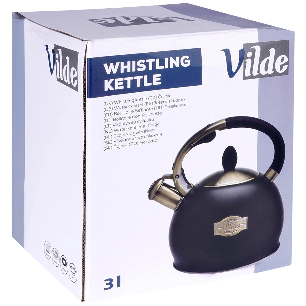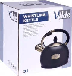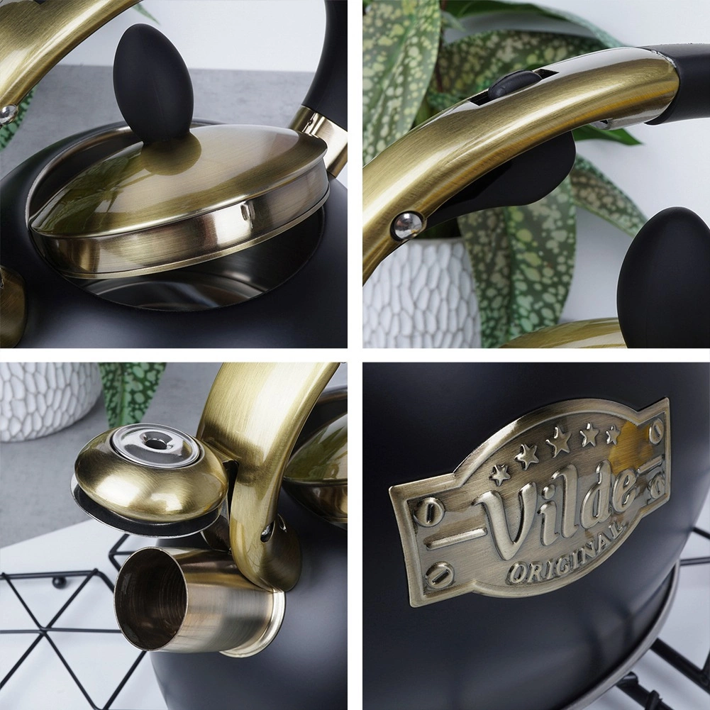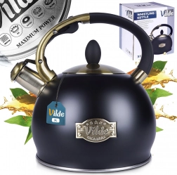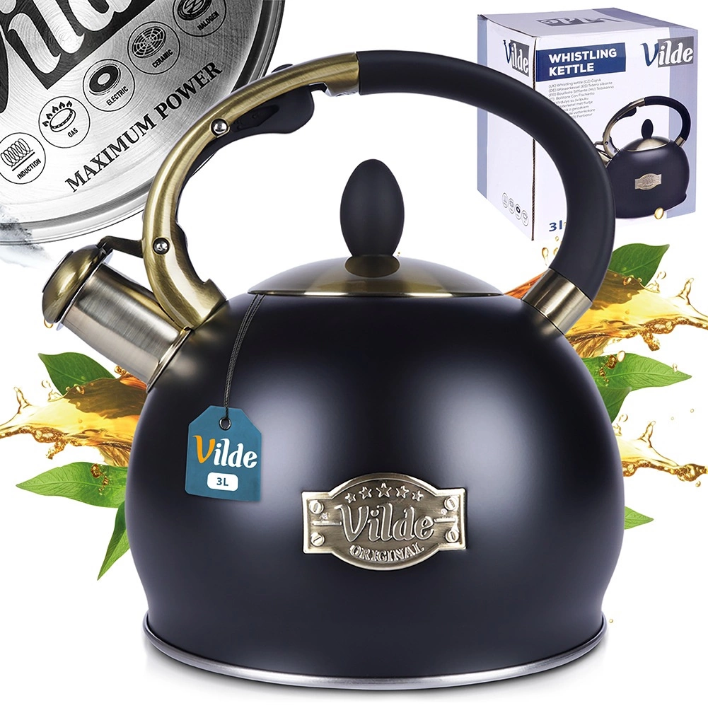Matná čerň v kombinaci s mosaznými detaily a emblémem Vilde dodává konvici nadčasový vzhled, který skvěle zapadne do moderní i klasické kuchyně.