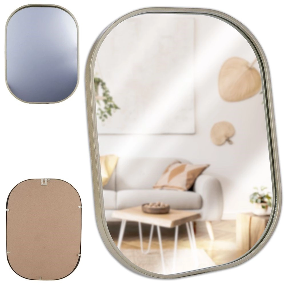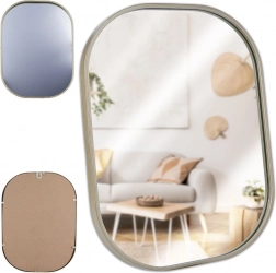 Designové oválné zrcadlo v odstínu šampaňského zlata vynikne jako praktický i estetický doplněk. Kovová rámová lišta působí elegantně a nadčasově, zároveň chrání hrany a zajišťuje dlouhou životnost. Zrcadlo můžete jednoduše zavěsit na zeď pomocí připraveného závěsu, čímž podtrhne atmosféru místnosti a opticky ji prosvětlí a zvětší.