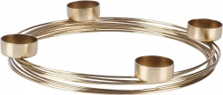 Elegantní kovový svícen ve zlaté barvě pro 4 čajové svíčky do průměru 4 cm. Minimalistický LOFT/industriální styl, stabilní konstrukce a univerzální použití jako dekorace do obýváku, ložnice i jídelny. Skvělý také jako základ pro adventní věnec.