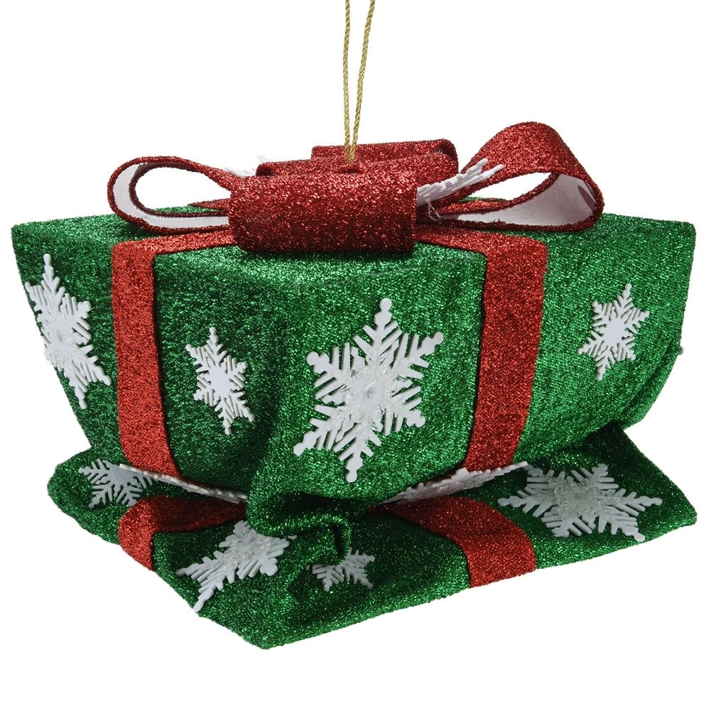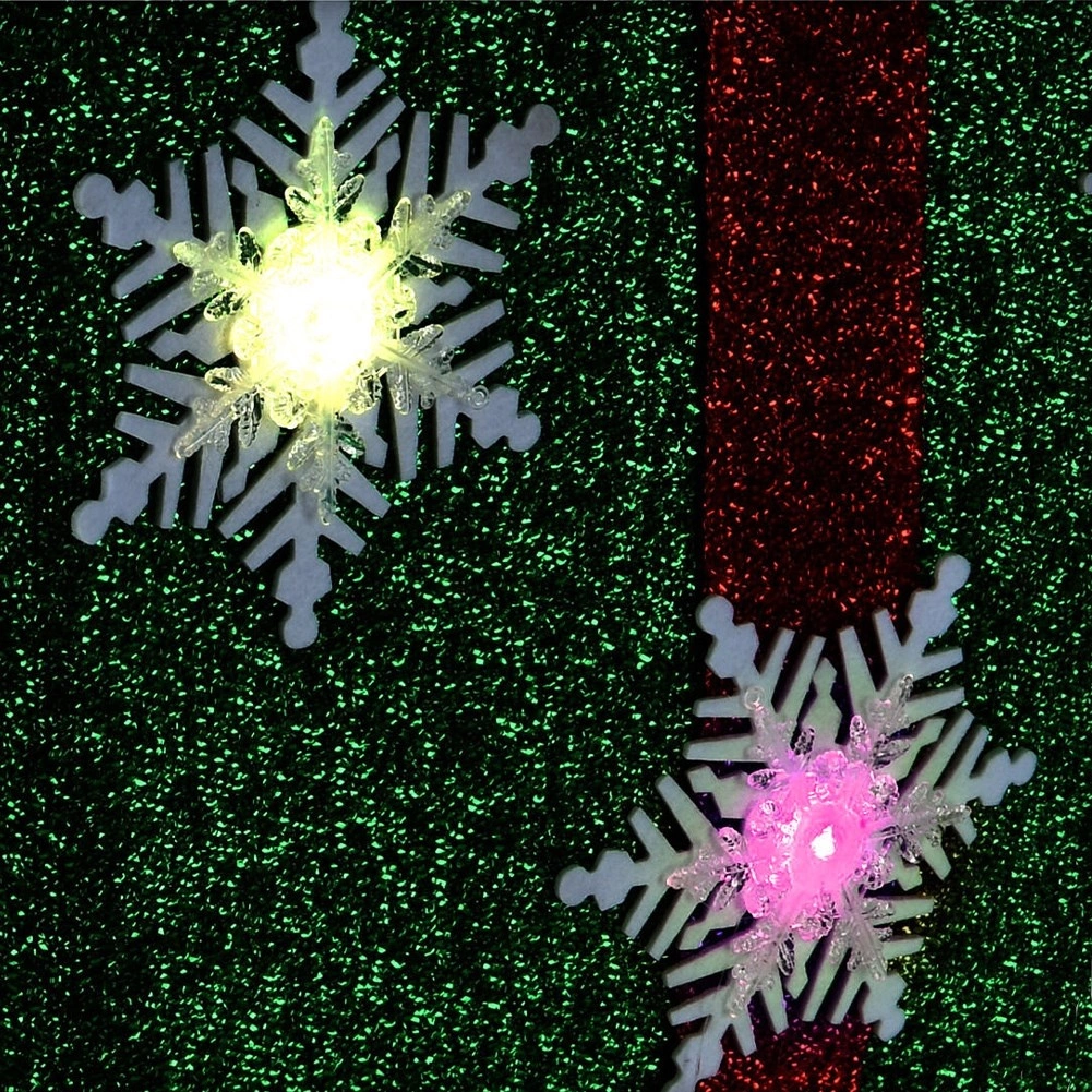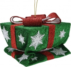Třpytivý zelený povrch se sněhovými vločkami a červenou mašlí vytvoří poutavý akcent v domě i na zahradě.