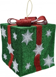 Vytvořte si doma i na zahradě sváteční náladu s tímto výrazným svítícím dárkem. Třpytivý zelený povrch, kontrastní červená stuha a bílé sněhové vločky přitahují pozornost ve dne a 14 barevně měnících LED diod vykouzlí večer příjemné světlo. Dekorace je skládací, takže ji po sezóně snadno uložíte.